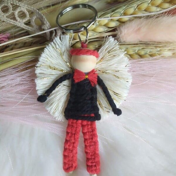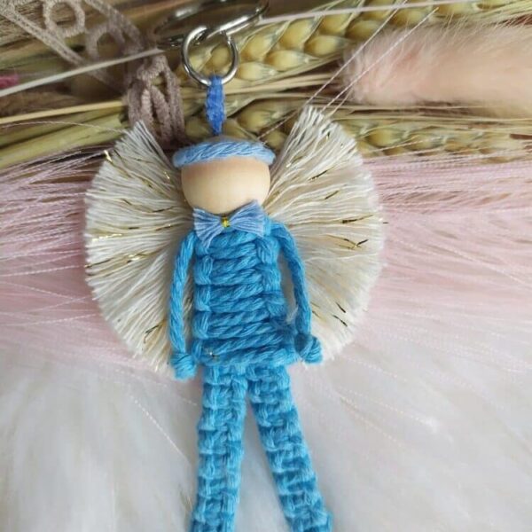 Ce joli petit ange, entièrement fait main avec beaucoup d’amour, embellira votre trousseau de clés ou votre sac et vous accompagnera dans tous vos déplacements.